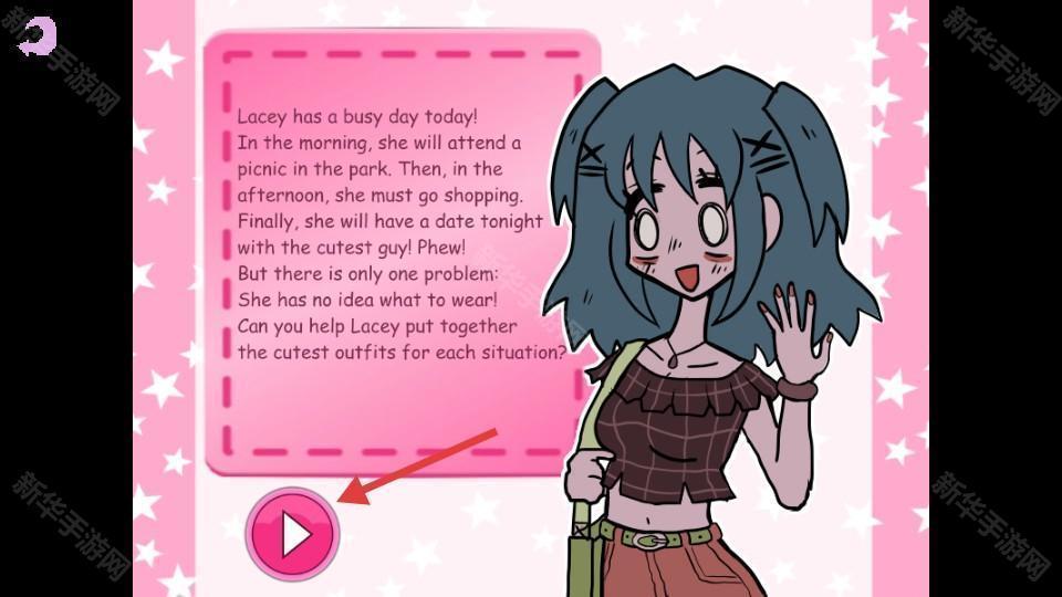 1、点击粉色播放按钮,进入游戏开始为Lacey搭配穿搭。