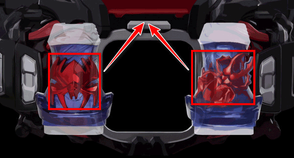 2、首先进左边这个,这是门田超人用来“赌上我的性命”变身的假面骑士戴蒙斯驱动器,左右两边切换印章,上方是盖章,中部会出现特效。