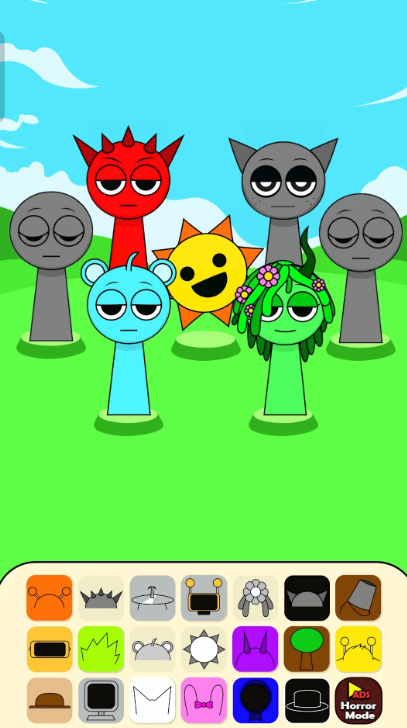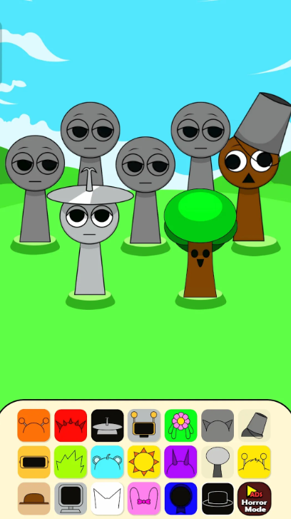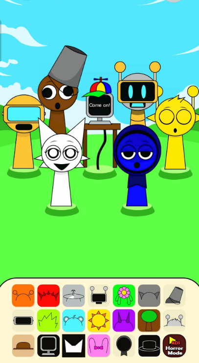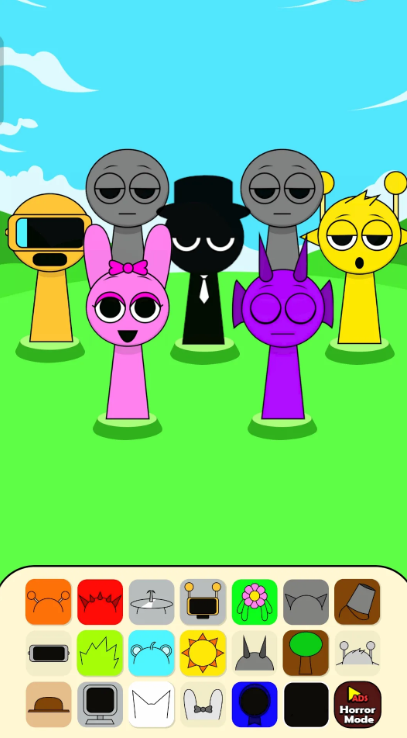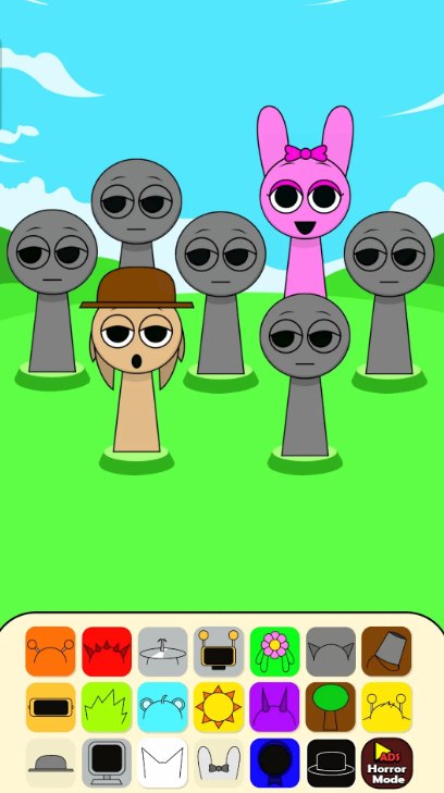 【节奏盒子Sprunked完整版】这是一款音乐节奏类型的游戏,是节奏盒子“Sprunki”模组的同人游戏,这个版本更适配手机屏幕,玩法和sprunki差不多,可以将下面的方块拖动在灰色角色的身上,他们就会开始唱歌,音乐每4-5个一组,分为音乐组、鼓点组和节奏组,不仅仅有普通模式,还有黑暗模式等着你去解锁,找到自己最喜欢的音乐吧,享受恐怖和诡异的视觉效果,快来试试看吧。