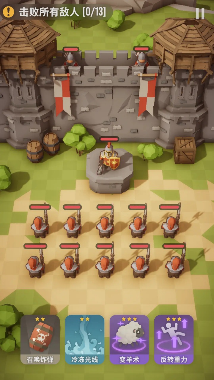 这个游戏本身是比较解压的,因为操作简单,同时画风也比较卡通,一到两个召唤,还有两到三个破坏法术,如果有保护部队的任务,再把一个破坏魔法换成治疗。是比较万金油的组合。可以应对随机的目标,因为如果全带召唤,遇到让你拆除建筑物的时候,你会发现你只能干瞪眼。玩的挺轻松愉快的。