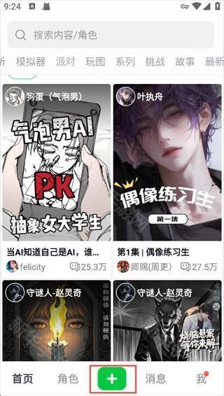 1、打开造梦次元App,点击下方的【+号】