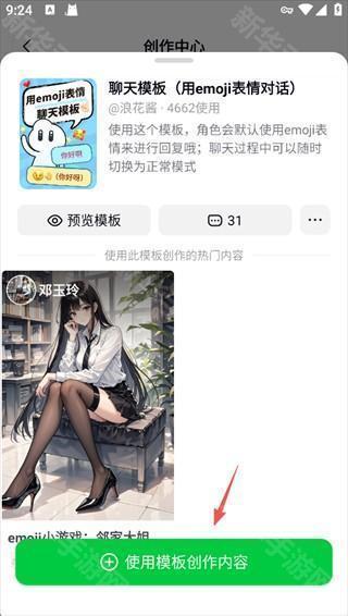 3、点击【使用模板创作内容】