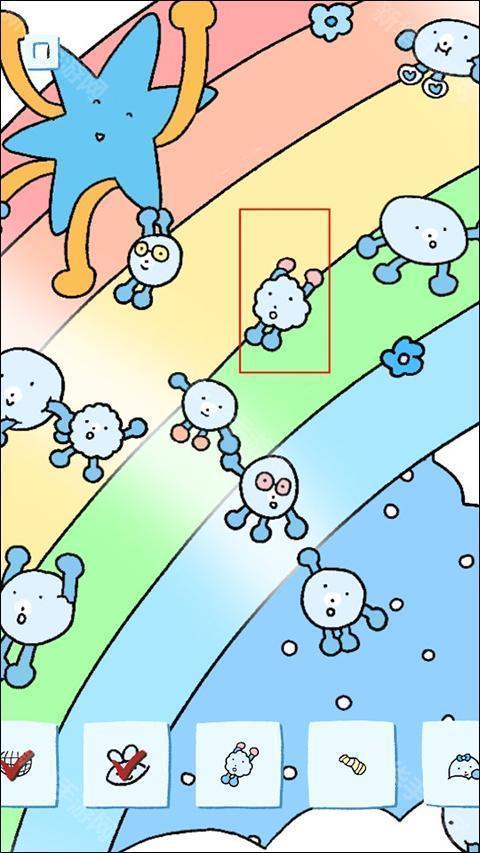 9、将屏幕划到右边看到彩虹的位置没,我们的红耳小兔就在彩虹中间的位置。