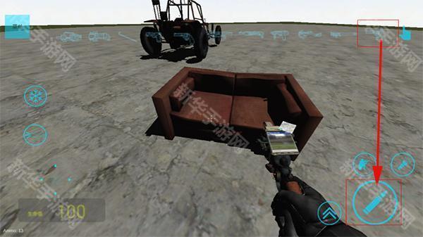 4、默认武器可移动物体,选择需要移动的物体后,长按开火键锁定后,在一直长按的状态下滑动开火按钮