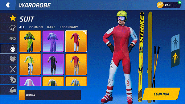 1.通过赚取硬币、购买和升级滑雪设备来提高滑雪成绩。