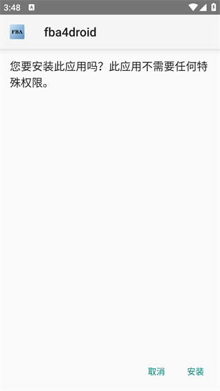 2、系统会提示需要安装名为fba4drioid的应用,点击安装即可。