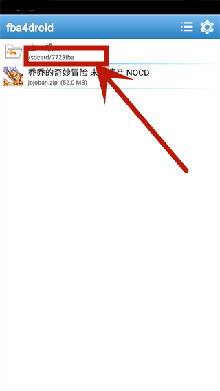 3、进入fba4drioid后点击左上角的“返回上一级”,在目录中找到7723fba,可以看到乔乔的奇妙冒险未来遗产 NOCD的压缩包。
