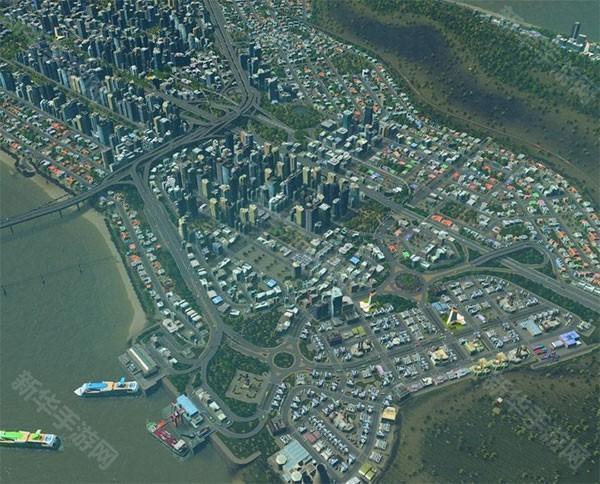 5、我个人认为,如果想做到不丑,又不堵车,最好的办法就是像我这个城一样,造一些快速路,快速路的出入口接到主干道和港口,使路网看着有层次感;
