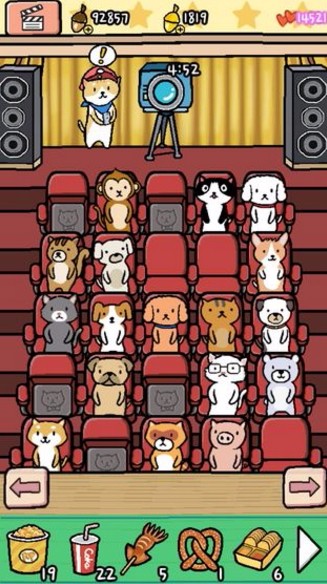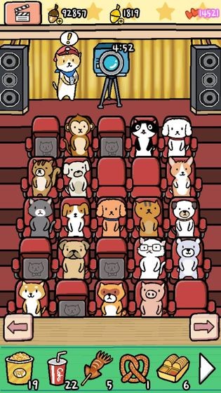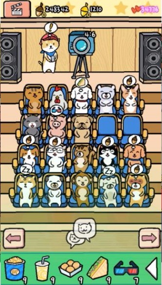 6.电影在放映厅开演后,动物们进场并支付橡子作为观影费。记得提前备好零食和3D眼镜,动物们有需要时随时提供。发现有小动物打盹,轻点屏幕唤醒它们。别忘了派遣主人猫前往村镇,邀请更多小伙伴来观影。