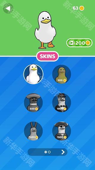 2、点击屏幕右侧的“DUCKS”,进入鸭子皮肤商城,花费金币可以解锁好看的服饰装扮。