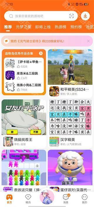 1、打开软件,进入首界面,不管是大厂商的新作还是非常热门的小游戏,都可以在首页中进行曝光展示,让玩家们一目了然;
