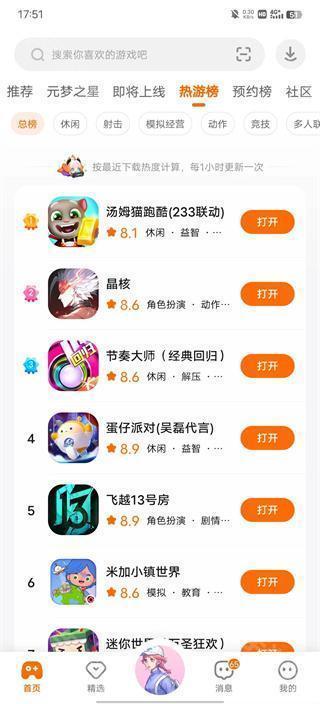 3、【热游榜】分区会实时为您更新游戏热度排行,跟着大部队走准没错!