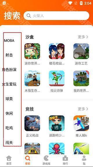 3、另外,也可在搜索当中,按游戏类型进行选择;