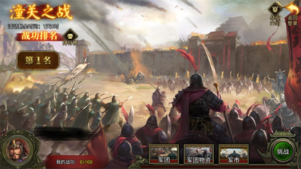 2、进入游戏后玩家可以选择自己喜欢或适合自己的战争模式。下方的军团,军团物资以及军市都是比较重要的。
