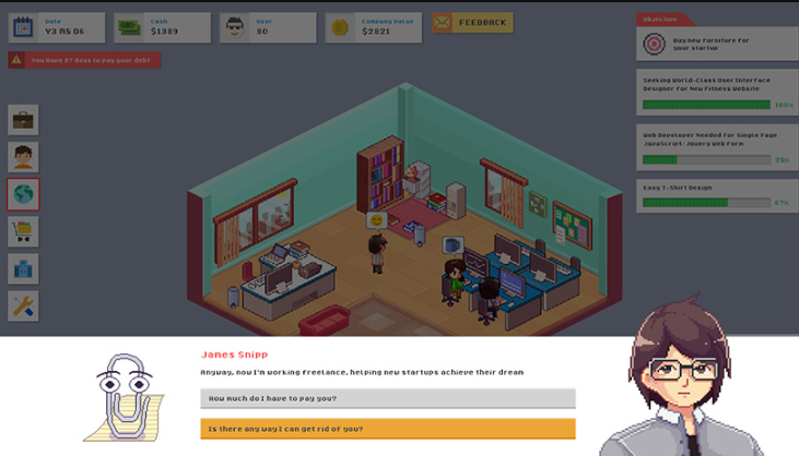 创业恐慌是一款模拟经营类的游戏,作为名刚毕业的学生玩家需要开始自己的创业之路,确定目标方向招募相关人才,帮助他们进行创业,不断盈利,获得更多的收益,体会到沉浸式的创业快乐!