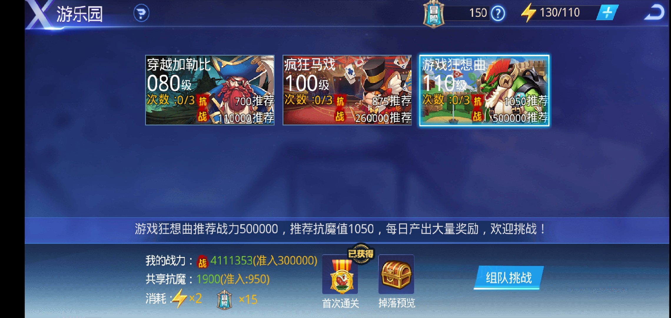 (110级、抗魔1393+、体力消耗五点、五十史诗冒险券,有两种难度,从普通到挑战 ,难度越高,奖励越多。)