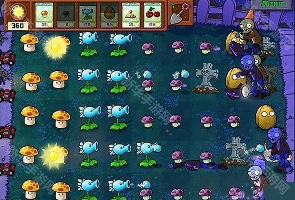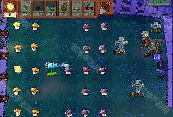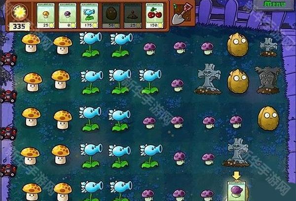 3、过关得到烟雾蘑菇。可以杀伤一条线,比喷射蘑菇射程远,而且是群伤性质。75的阳光,性价比高。