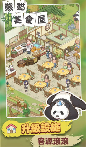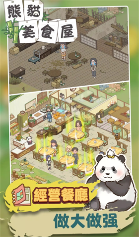 熊猫美食屋中,玩家可以自由定制餐厅的装饰和菜单,打造独一无二的熊猫美食餐厅。游戏还有挂机放置的功能,即使不在游戏中也能持续经营,为餐厅带来收益。