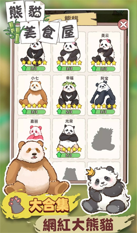 1、玩家可以在游戏中制作各种美食,种类繁多,满足不同种类熊猫的口味需求。