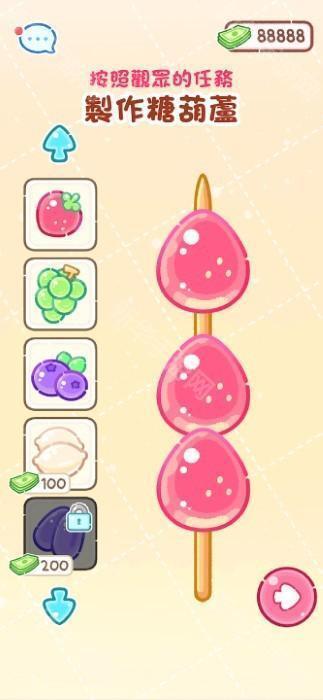 糖葫芦达人外卖版是一款最新的糖葫芦达人系列模拟经营类游戏,玩家将通过各种顾客多的要求制作出好吃又好看的糖葫芦,轻松简单的操作加上清新Q萌的画风,给人带来更多轻松解压的氛围,同时还有直播、diy制作等各种操作方式,通过赚取货币,可以解锁升级方式,自由搭配调料,制作出各种不同的糖葫芦,感受丰富的色彩好独特的玩法,尝试使用手中的配料展开不同的制作过程,更有asmr、spa等多种游玩模式,快试试吧!