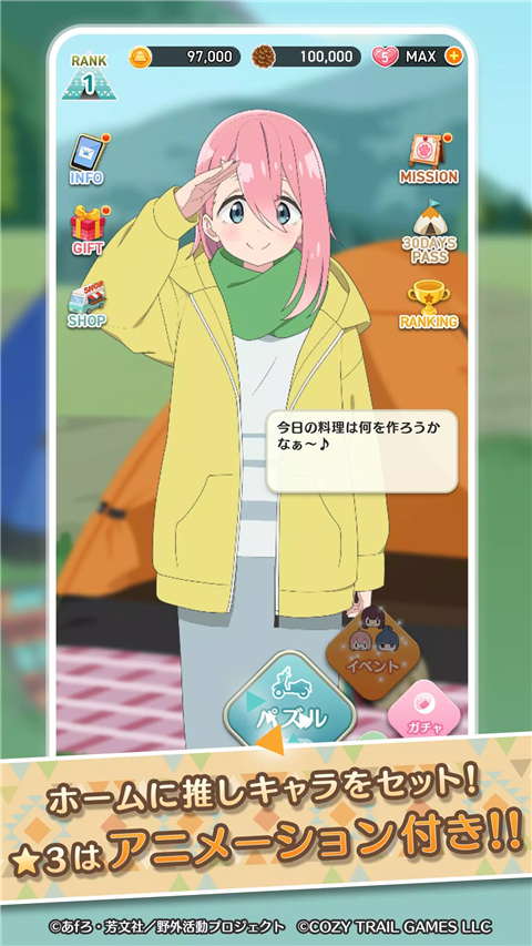 1、玩家可以与《摇曳露营》中的角色互动,提升好感,解锁专属剧情,感受原作中的性格。