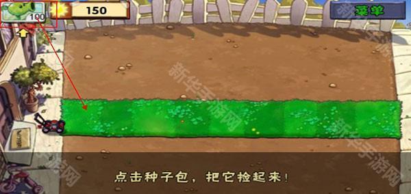 2、游戏开始都会有新手指导,例如下图就让玩家点击植物放置合适的位置