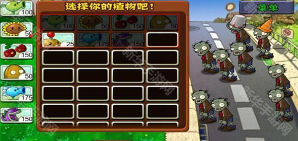 6、当玩家在游戏中获得6个以上植物时,就算是通过了新手指导,然后就可以在下图选择自己喜欢的、合适的植物来进入闯关模式,该模式也是游戏的正式开始阶段