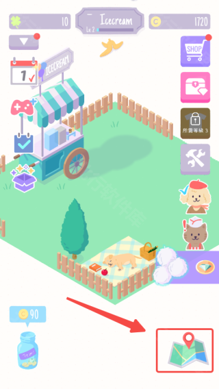 3、抵达后寻找顾客,并点击冰淇淋图标开始制作;