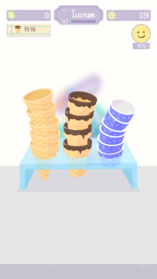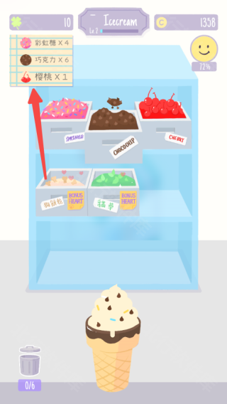 6、制作完成后,点击顾客的手部图标交付冰淇淋;