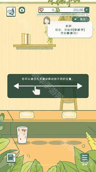 2、左右滑动切换场景到茶水间,为客人制作美味的饮料。