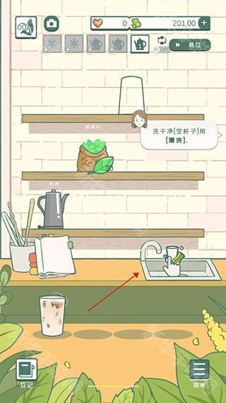 6、招待完这个客人之后,记得点击回收客人的使用完的杯子,拖动到水池清洗他们,桌上最多可以放置4杯空位,当位置满了就需要立即清洗腾出空位。