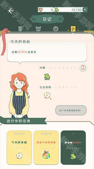 9、点击左下角的“日记”,可以看到每日待完成的任务,没完成一次就可以获得对应的奖励。