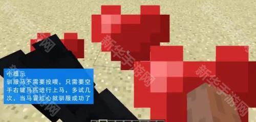 3、马不需要投喂,只要空手右键点击马匹进行上马,反复几次,当马冒红心即可。