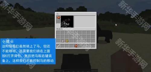 4、上马后并不能移动,需要骑在马上按键盘E键打开背包,右键装备到马鞍。