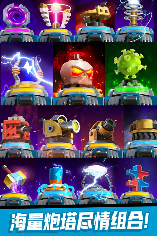 1、独特的炮塔塔防类游戏,玩家能够组合不同的战斗环节,搭配阵容进行战斗。