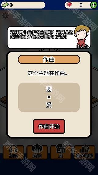 现在让我们学习如何作曲吧!选择“作曲”,每首曲子都应该确定一个主题,选择合适的主题进行组合是非常重要的,好的曲子不仅能吸引更多音乐爱好者,同时也能为你带来不错的收益和人气!