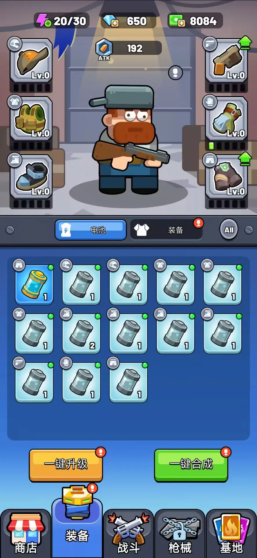 2、游戏中电池可以对装备进行升级,给你的装备提升伤害、防御、攻击。