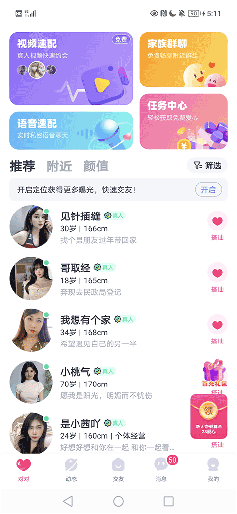 在对对,你可以通过文字、语音、视频的多种方式与同城的异性聊天互动,一键相识,快速开聊,秒速回复。