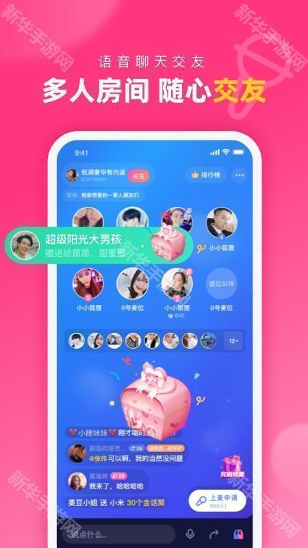 有萌妹、有御姐、有校花、也有网红,在线语音聊天,以歌会友,天南地北的朋友,在语音与视频房间内实时互动。