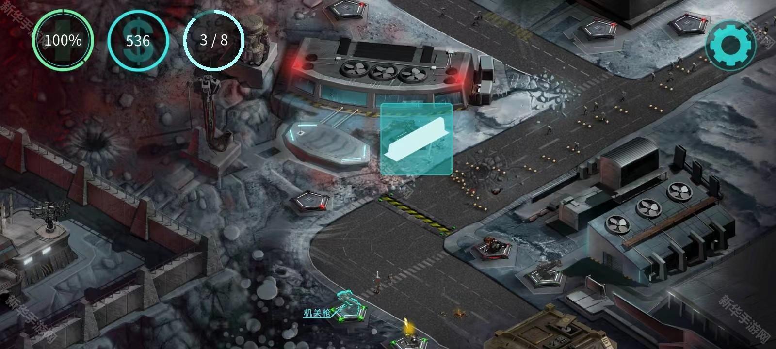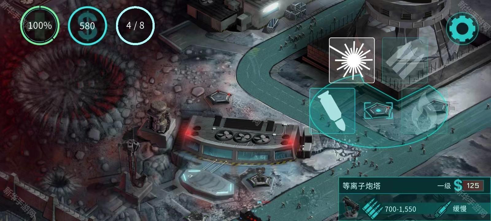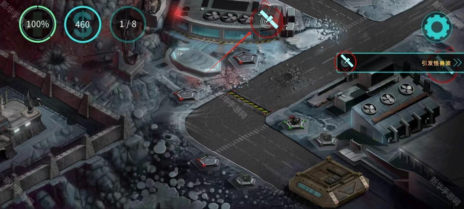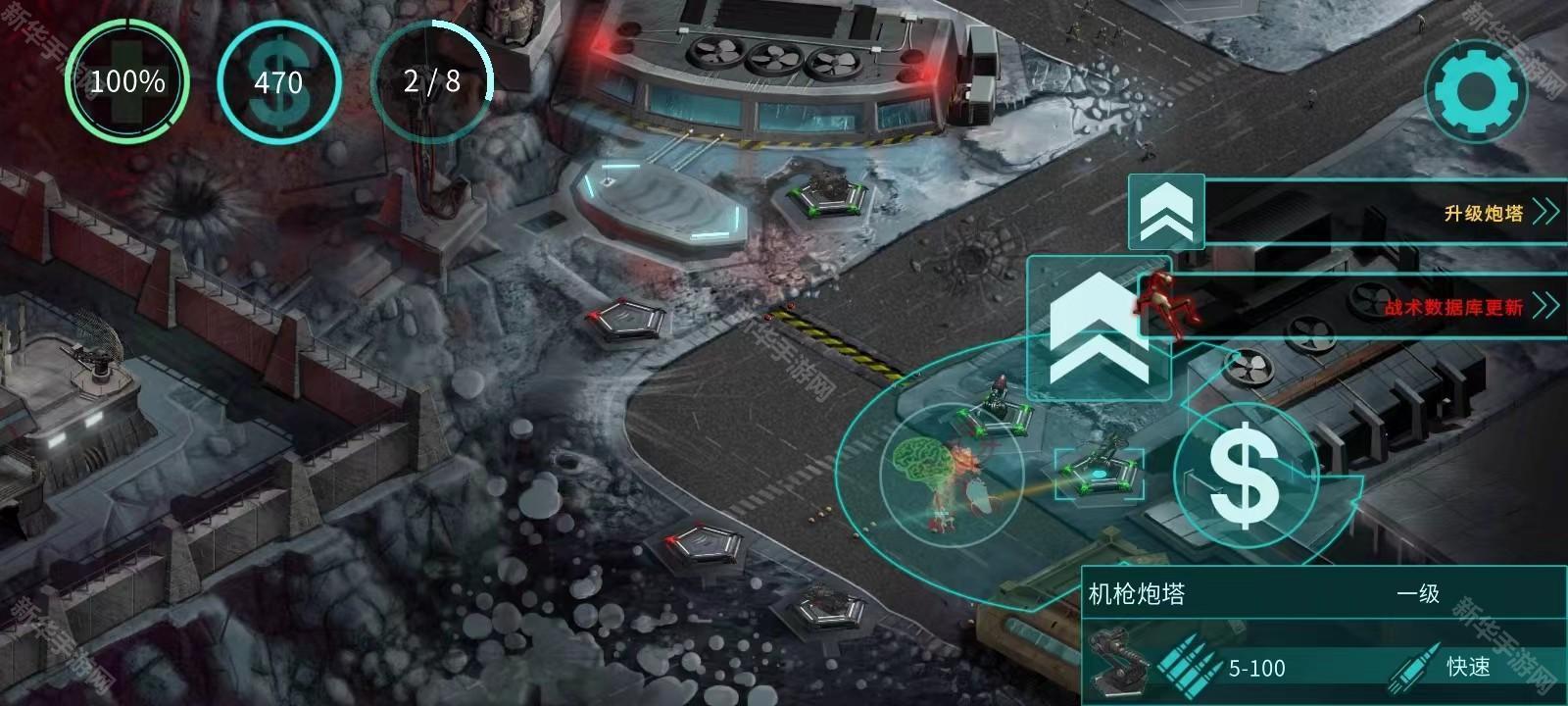 6、接下来就可以在其他地方建造炮塔并升级它,向上的那个箭头就是对炮台进行升级;