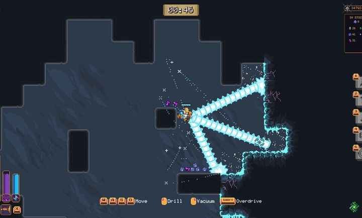 3.利用旅途中获得的资源和技术升级强大的服务,在矿井中自由航行,突破岩石和墙壁。