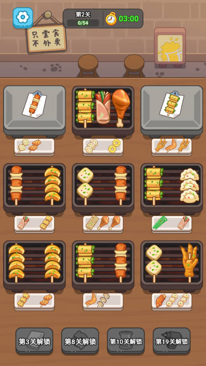 3、玩家还能解锁全新的烤架,让你能够在同一时间完成更多的烤串,满足顾客需求。