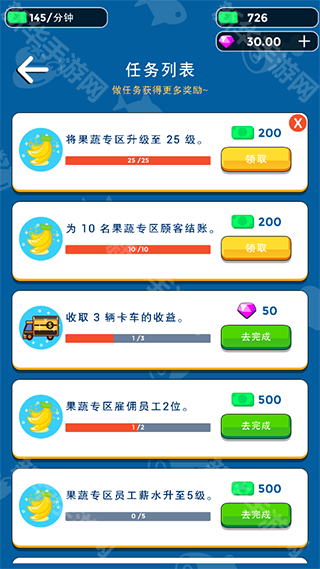 2、还有众多充满挑战性的任务等你来完成,让玩家能够随时获取更多的资源提升超市等级。