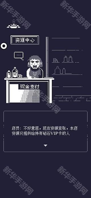 4、打败怪物后,玩家能够进入资源中心,与店员对话.
