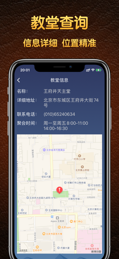 3、软件中还有着多个教堂地址的信息详细,联系电话、聚会时间等。