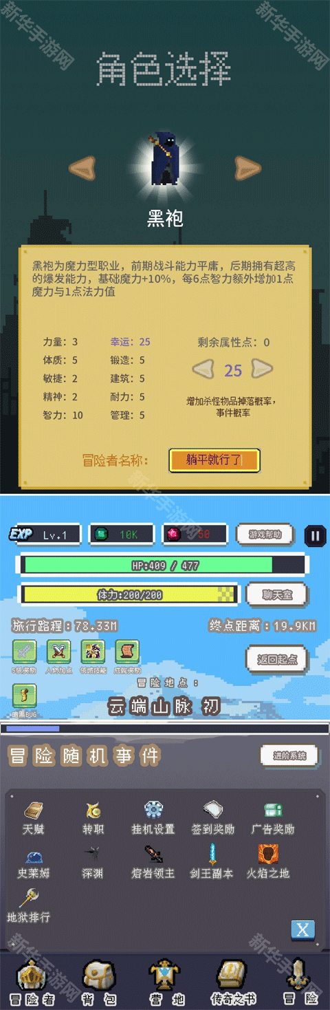 【目标是传说级冒险者免广告版】这是一款像素冒险放置类型的游戏,这个版本是免广告版本,不需要观看广告即可流畅游戏,恶魔会攻击屏幕的右侧,只要你打败他们,你就可以获得道具、武器、装备等,怪物的等级越高,获得的道具等级就越高。可以收集材料,锻造设备,探索丰富的地下城和随机事件,只要他们不是故意死亡,他们基本上可以慢慢享受挂机游戏的乐趣。
