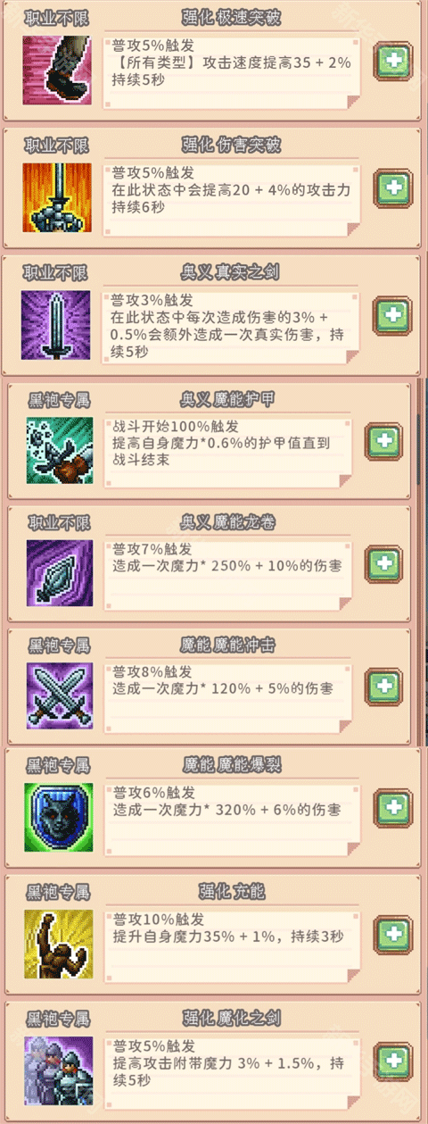 勇者:通过4法皇、2不死达成既有伤害又有保命的效果,最好武器及副手选***捷属性的,保证自己的攻速便能保证自己活的更久。