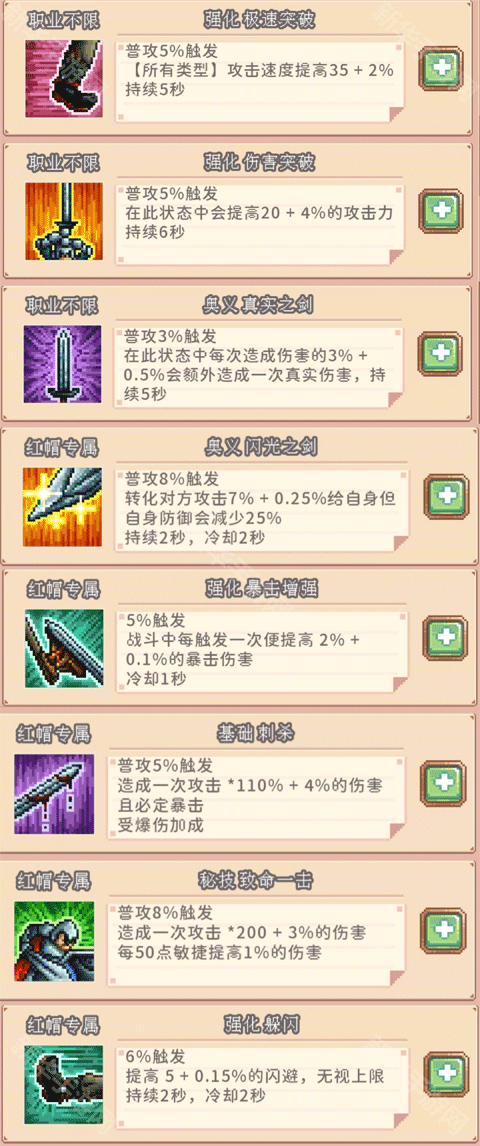 远程职业,就一个词形容:赌怪!敌人越强我越强的代表,依靠独家技能:闪光之剑,可以偷取敌人的攻击力,只要技能触发就是瞬秒。竞速一把手,但上限没有其他职业高,大家都能秒就是红帽最强。