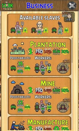 2、完成日常工作,每个奴隶能够根据当前的市场价值进行定价,谋取暴利。