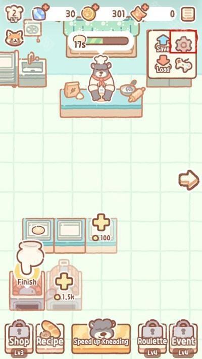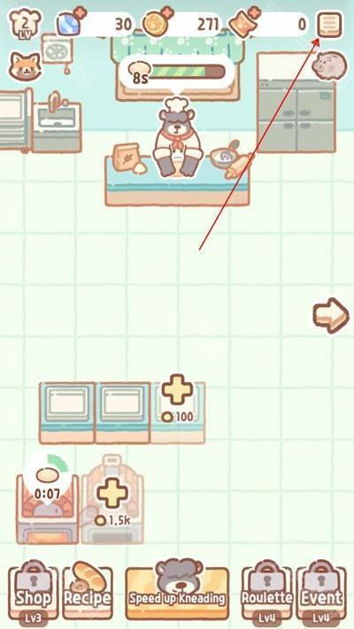 1、打开进入小熊面包店后,点击右上角的菜单按键。